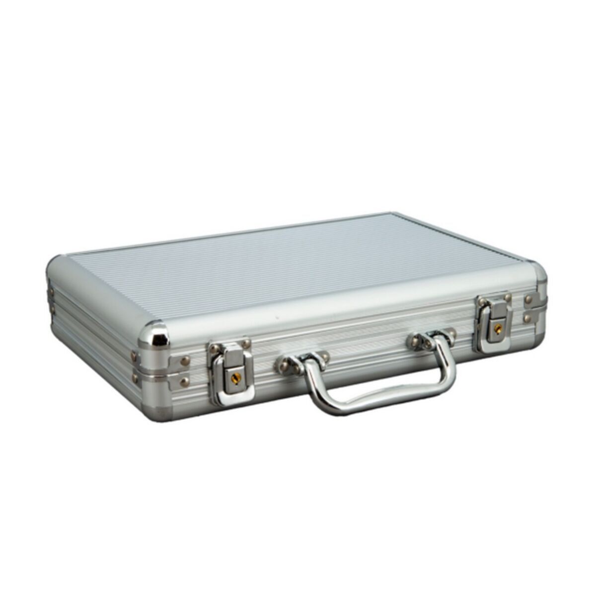 - Durable aluminum carry case with a comfortable handle and secure lock system for dust-resistant storage and portability.