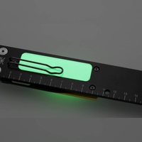 - On the G10 grip and on the back of the main body there are luminescent stickers, which increase the visibility of the tool in low light conditions. Also on the back, is a laser engraved ruler, useful when planning cuts on the car body.