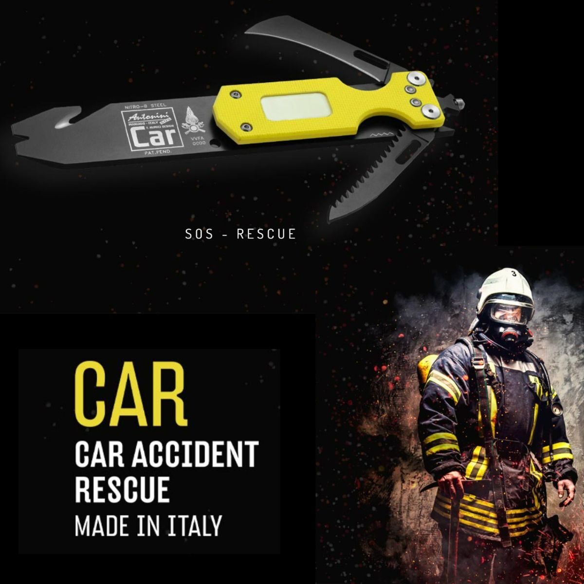 The Antonini CAR is a multipurpose tool designed to satisfy a specific request from the Italian Firefighters, which complained about the impossibility of finding on the market a tool equipped with all the features necessary to equip operators during interventions following car accidents.