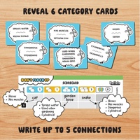 (You can make connections using just 2 of the cards, 3 of the cards, 4 of the cards or 4+ for bonus points). Then, everyone shares the connections they made. Score points for any unique connections that you were able to find. If your connection(s) are the same as anyone elses, you don't score and have to cross off a number from the bonus track which gives you more points at the end of the game. After 5 rounds, the player with the most points, WINS!