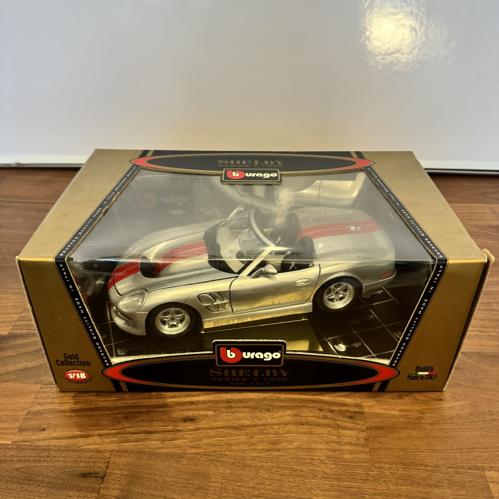 Burago Shelby Series 1 1999 Silver Red Stripes 1:18 Diecast Model Car