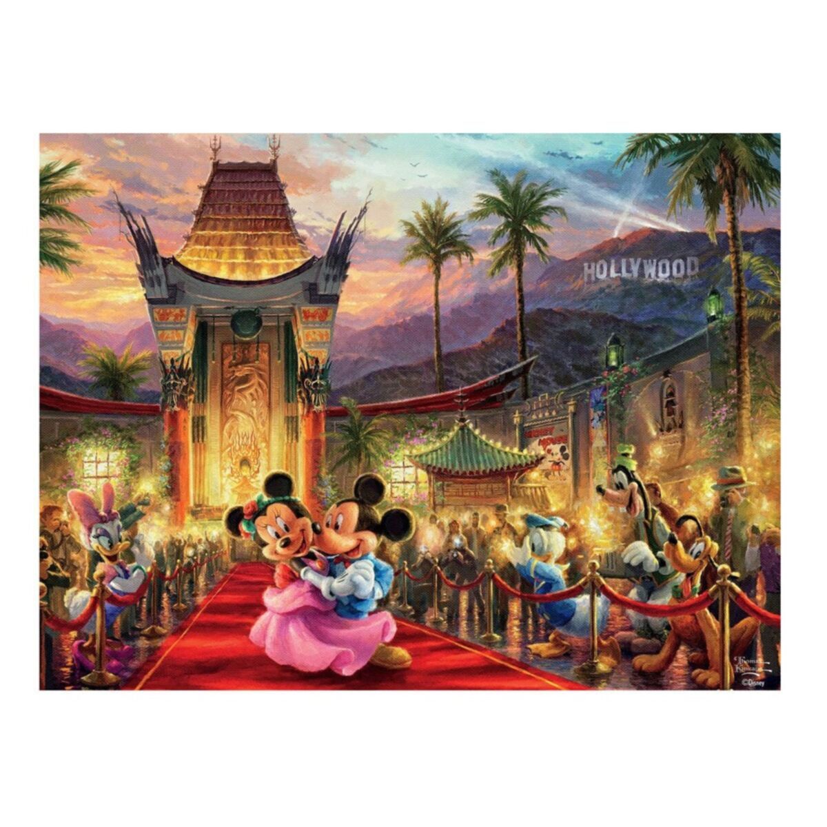 Thomas Kinkade Disney Collection is a group of paintings inspired by great moments from famous Walt Disney movies this 750 piece puzzle features Mickey and Minnie on the red carpet in Hollywood.