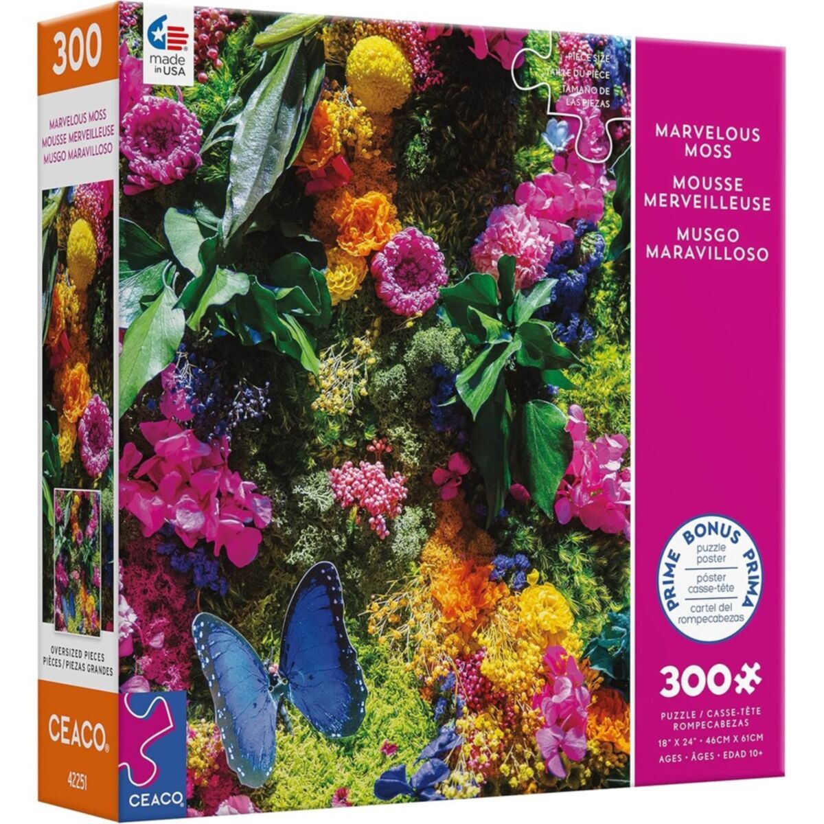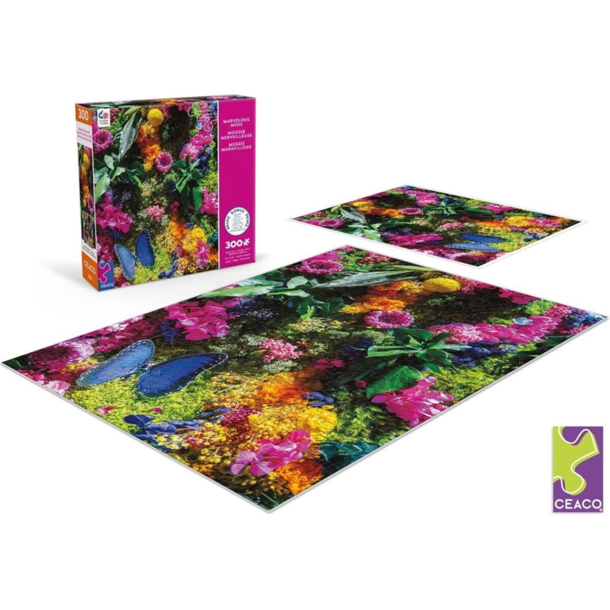 Dive into the enchanting world of Ceaco's "Marvelous Moss - Moss Butterfly" oversized jigsaw puzzle. With 300 meticulously crafted pieces, this puzzle promises hours of entertainment and a satisfying challenge for puzzle enthusiasts.