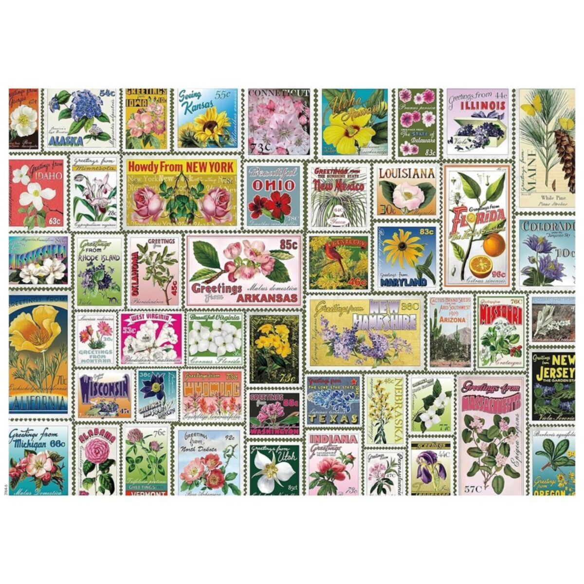 Ceaco Stamps Flower Stamps Jigsaw Puzzle 1000 Pieces