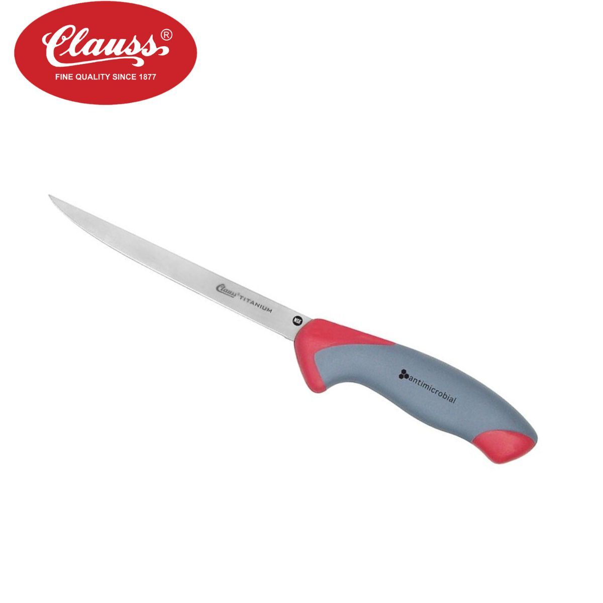 The Clauss 6" Titanium Filet Knife dons a blade and handle combination worthy of culinary professionals who expect only the best from their cutlery. The titanium bonded blade is 3x harder than stainless steel so the blade can retain its edge across countless cuts, and it will handily resist adhesives and corrosion along the way. Also featuring an oversized backbone for enhanced durability and precision ground blade, there is little the Filet Knife cannot handle in the kitchen. The handle has built in antimicrobial protection as well as a non-slip grip to prevent the growth of stain and odor causing bacteria and ensure secure handling of the knife in any situation. Backed by our Lifetime Warranty and NSF approval, the Clauss 6" Titanium Filet Knife will deliver in professional and household kitchens alike.