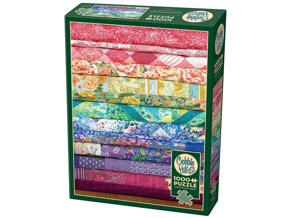 The Cobble Hill Creation team is delighted to bring Comfortable Rainbow, a Truly Original Puzzle, to your puzzle table. Did you know that this colourful quilt image was created in-house many years ago with different colours? Cobble Hill was founded in 2005 with a desire to bring loving, whimsical, high-quality images to puzzle enthusiasts around the world! Their puzzles have been described as nostalgic, lively, endearing, sweet, durable, and fine quality.