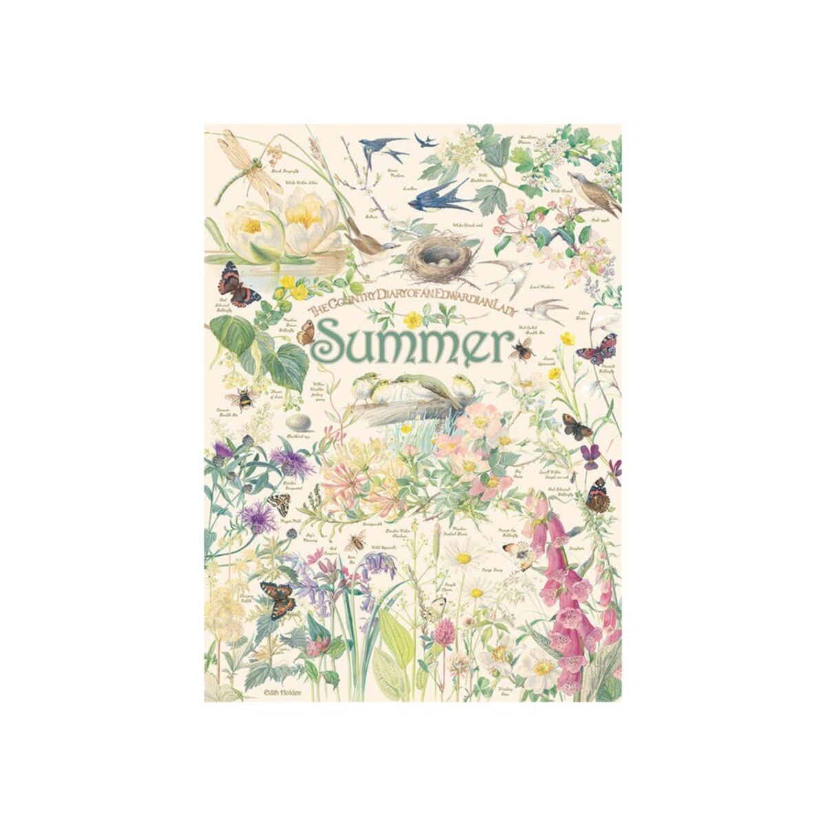 Buzzing bees, beautiful birds, and summer flowers show off their vibrant palette in this lively 1000 piece puzzle, Country Diary: Summer from the collection of Edith Holden's 'The Country Diary of an Edwardian Lady'.