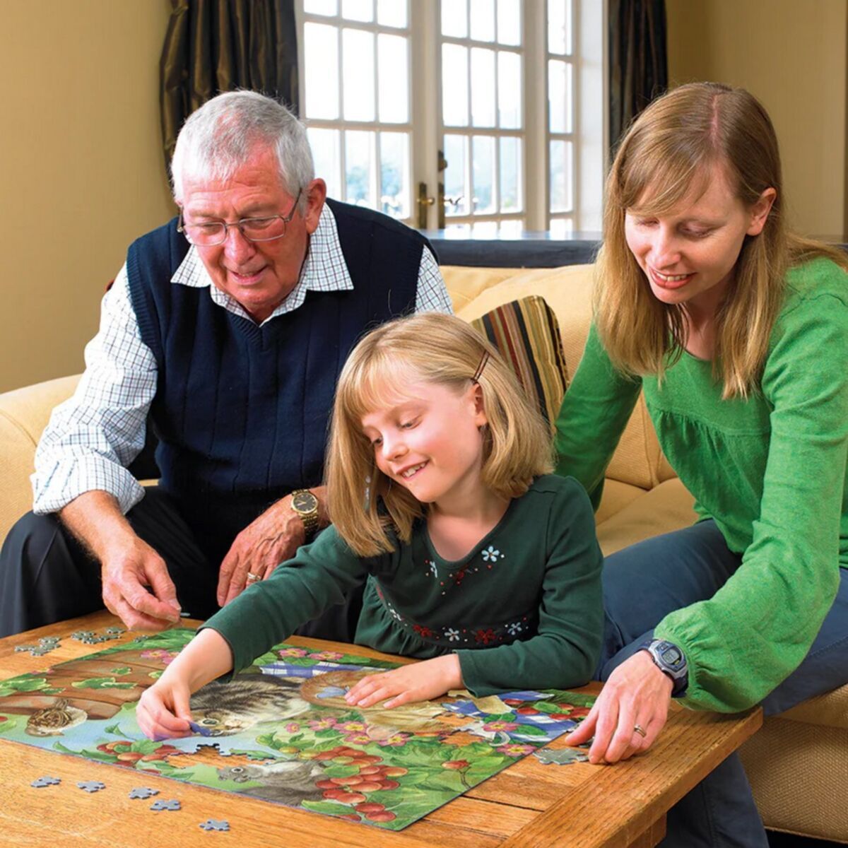 Family Pieces 350 puzzles include three different piece sizes so puzzlers of all skill levels can collaborate. The large pieces are on one end of the puzzle, the medium in the middle, and the small pieces on the other end. While these puzzles are designed for families, don't let that stop you from enjoying it on your own!