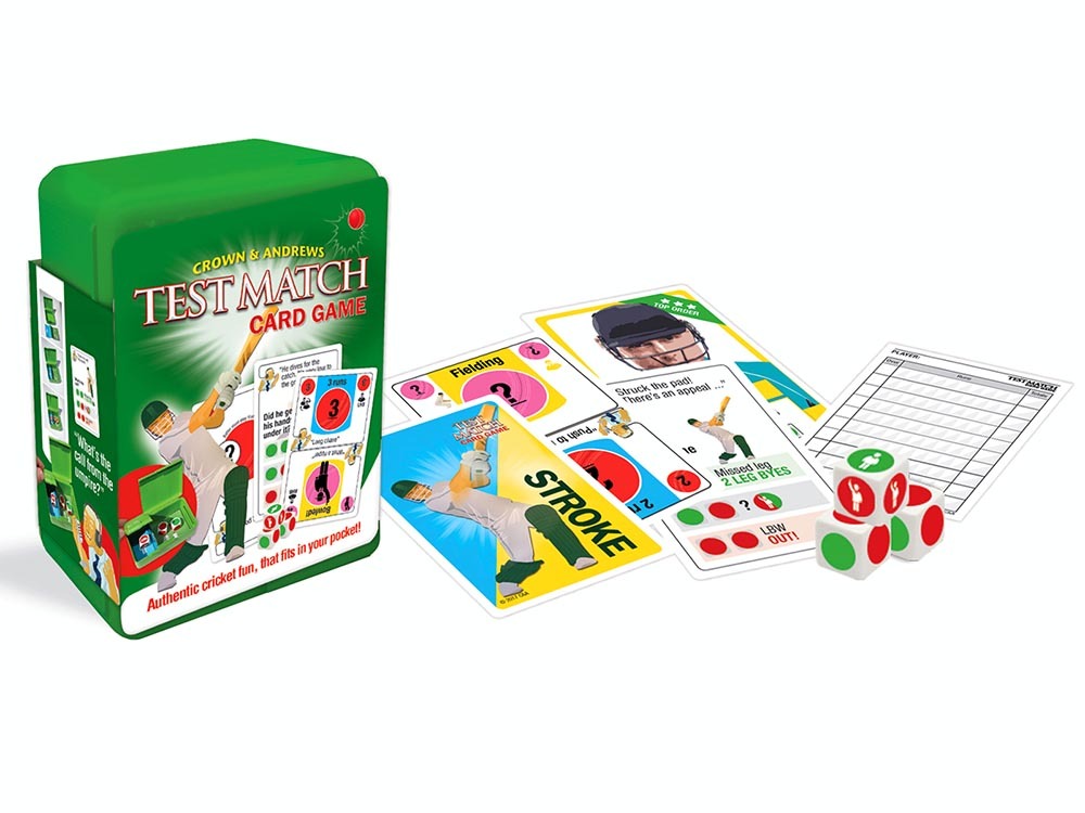 Enjoy authentic cricket fun with this compact card and dice game. Take turns batting, bowling and rolling to see who can score the most runs from two quick innings. Fun and easy to play with just the right amount of strategy and surprise for cricket fans of all ages.