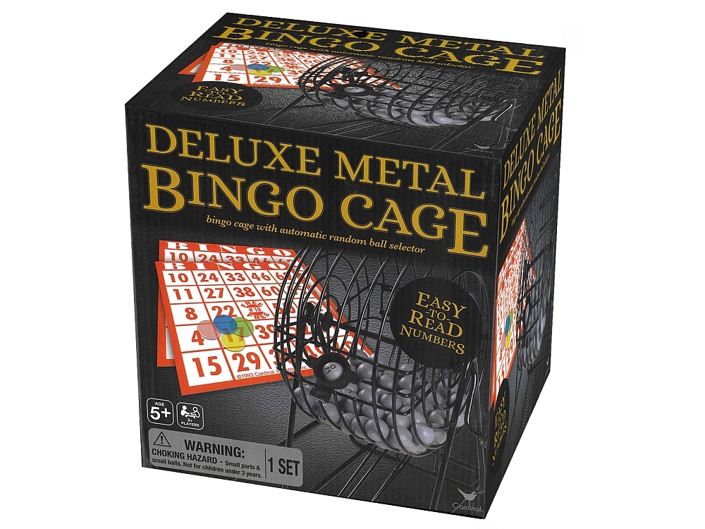 Bring the fun and excitement of Bingo home with the Deluxe Metal Bingo Cage with automatic random ball selector. With 75 numbered balls, 17 double-sided Bingo cards, and 150 plastic markers also included, you're ready to play Bingo anywhere.