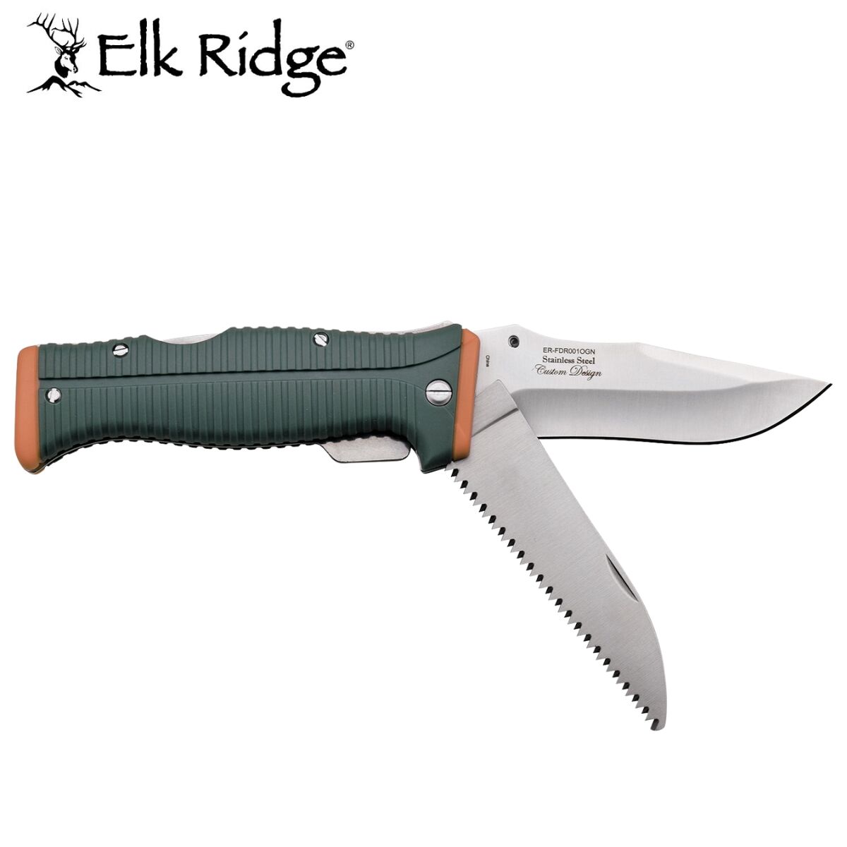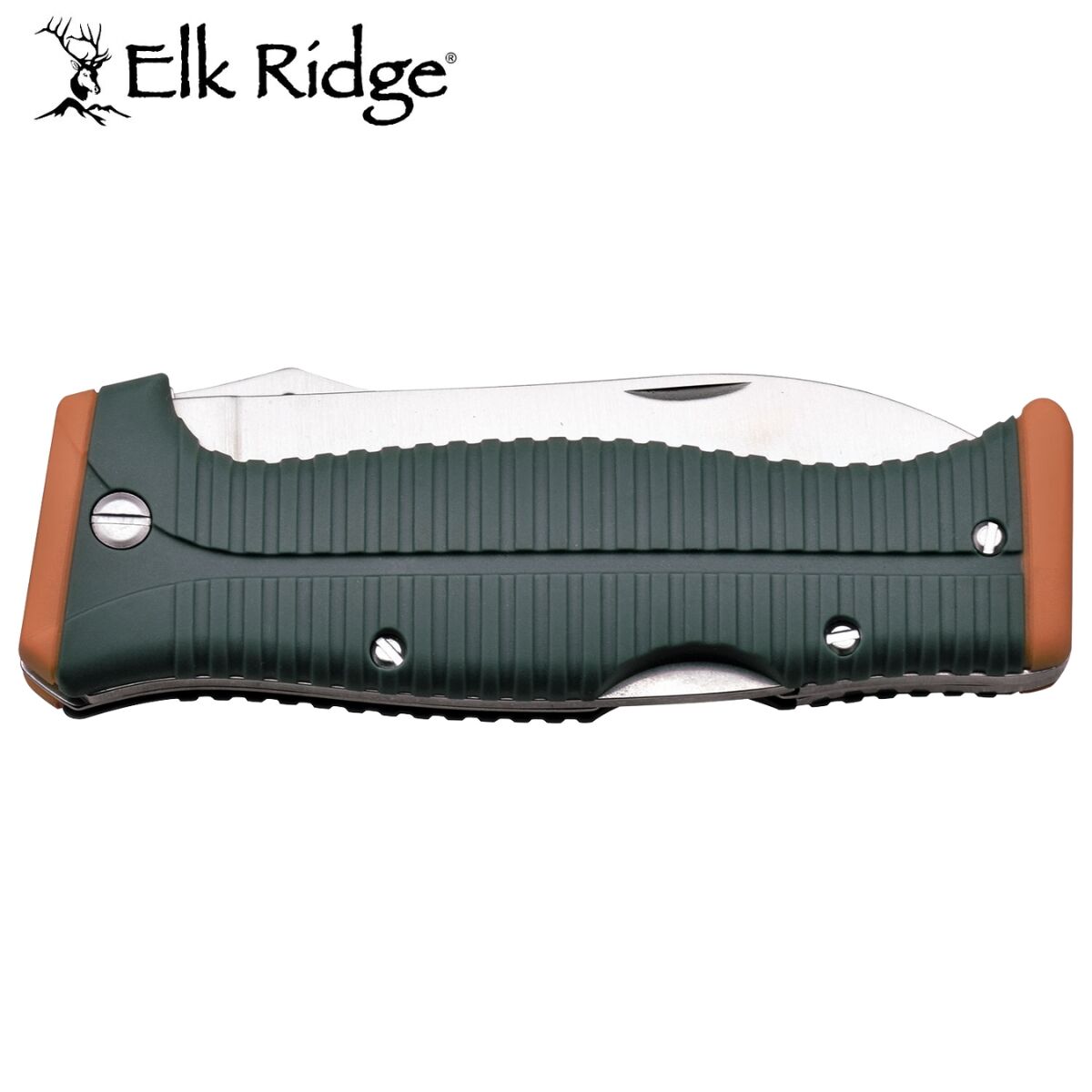 Built for the great outdoors, the Elk Ridge Outdoor Folding Knife is a rugged and reliable tool for hunters, campers, and adventurers. Its 7Cr17 stainless steel drop point blade offers excellent strength and edge retention, while the injection-molded ABS handle with rubber overmold ensures a secure grip in any conditions.
