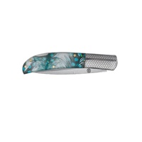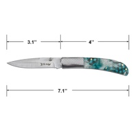 Striking Elk Ridge Manual Folding Knife with a satin stainless steel blade and vibrant turquoise POM handle, blending style and utility for outdoor enthusiasts.