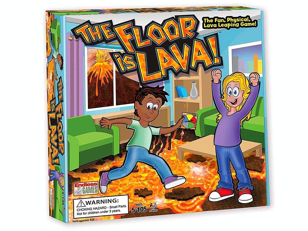 The Floor is Lava!, an exciting new board game that turns any living room, backyard, or floor into a lava jumping adventure! Players: 2-6 Indoor and Outdoor Play Ages: 5+ Order Includes: 25 Colored Foam Safety Stones 27 Challenge Cards Game Spinner.