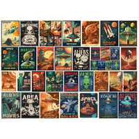 Dive into the retro-futuristic world of alien adventures with the Vintage Alien Posters 1000-piece puzzle by Eurographics. Featuring an eclectic collection of nostalgic sci-fi posters with bold designs and vibrant colors, this puzzle celebrates the imagination of extraterrestrial life and classic space exploration themes.