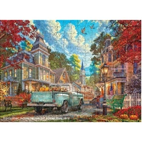 Step into a crisp small-town Autumn Afternoon where a classic Chevrolet pickup rumbles down a tree-lined street glowing with red and gold leaves. This 300-piece XL/Oversize jigsaw features extra-large, easy-to-handle pieces for a comfortable build and a richly detailed scene filled with porch lights, pumpkins, and cozy Victorian homes. Printed on premium, non-toxic blueboard with a precision fit, it's a relaxing fall project for puzzlers 9+ and a charming display once complete.