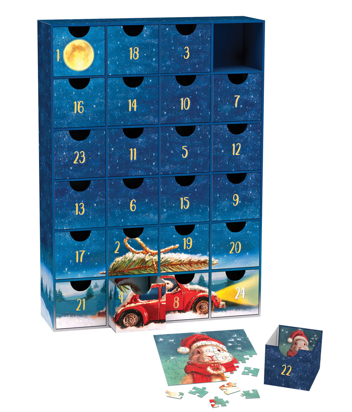 This Advent Calendar combines the excitement of a countdown with the relaxation of puzzling, making it perfect for the whole family. Whether you're a puzzle enthusiast or just love heartwarming holiday art, Christmas Animals adds a special touch to your seasonal traditions. Create 24 magical memories as you piece together these festive scenes, one day at a time!