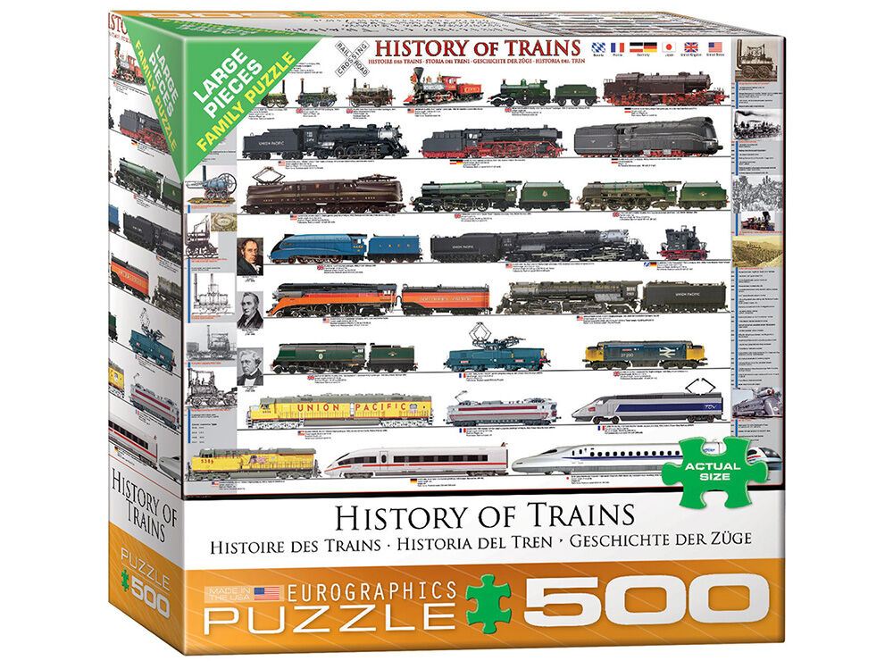 Eurographics History of Trains 500-Piece XL Puzzle. Learn about the railway history with this fun and educative puzzle.