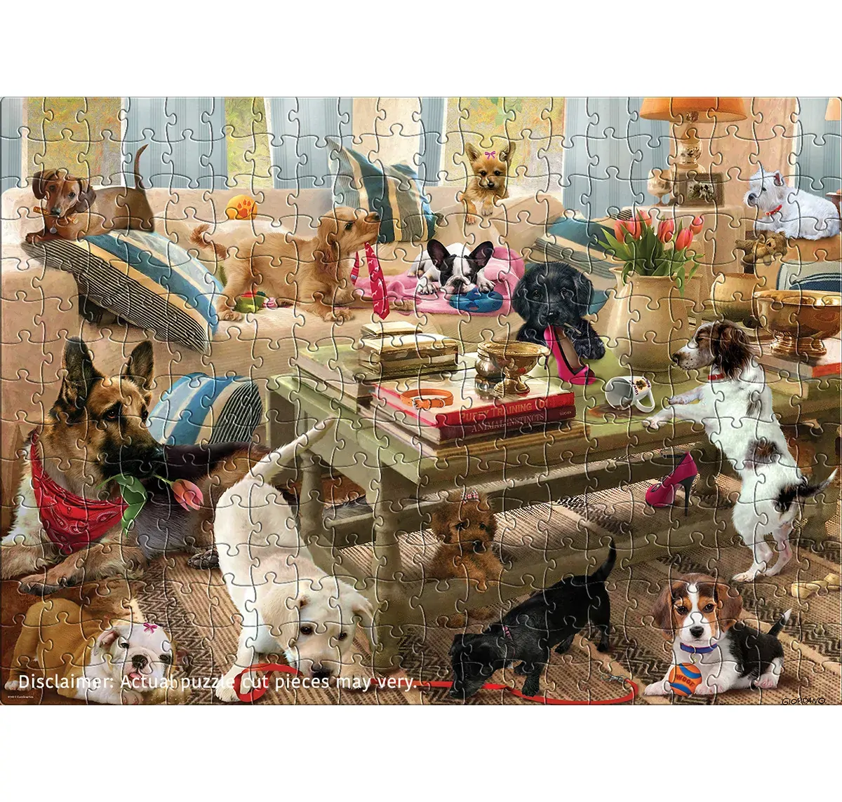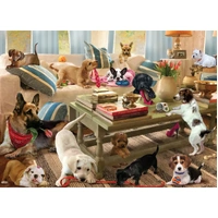 Make room for cuteness! Living Room Pups turns a cozy lounge into a hilarious puppy playdate - tossed pillows, missing slippers, chewed ribbons and a whole lot of wagging tails. With extra-large, easy-to-grip pieces, this 300-piece puzzle is perfect for relaxed, family-friendly puzzling and for anyone who prefers bigger pieces.