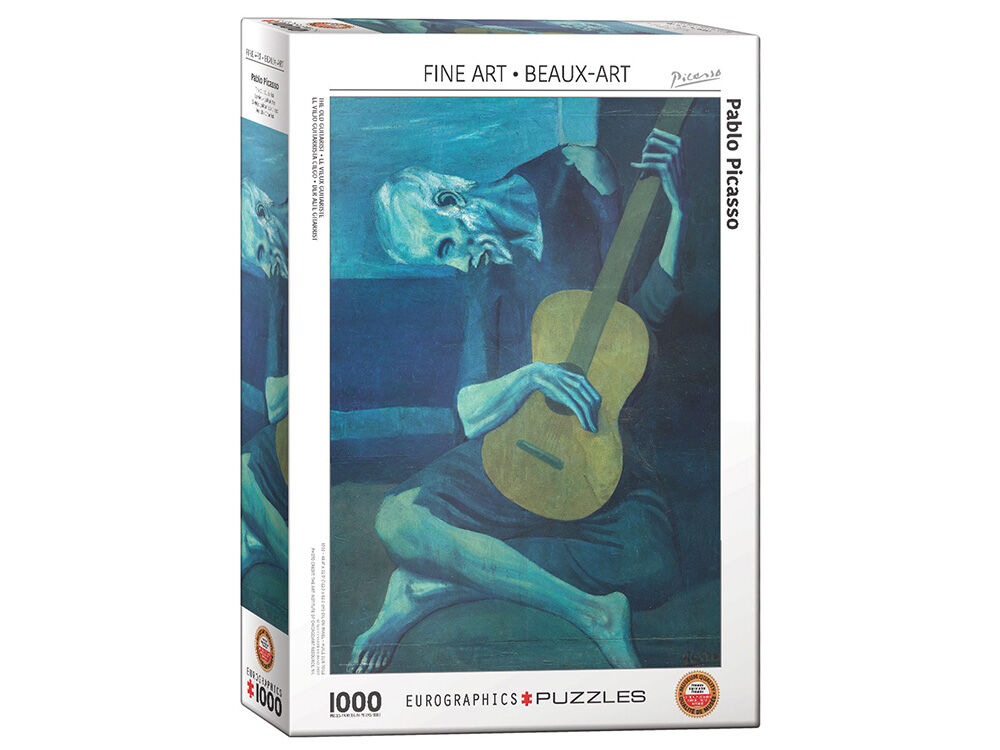 Eurographics The Old Guitarist 1000-piece Puzzle. The Old Guitarist is an oil painting by Pablo Picasso, which he created in late 1903 and early 1904. It depicts an elderly musician, a haggard man with threadbare clothing, who is hunched over his guitar while playing in the streets of Barcelona, Spain.
