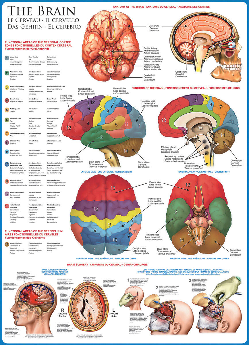 The human brain is a complex and fascinating part of our anatomy. Learn about the different regions of the brain and about brain surgery. This is a high quality 1000 piece jigsaw puzzle from Eurographics Puzzles . It features full glossy artwork and is manufactured from recycled cardboard. All Puzzles are made using Smart-Cut Technology.