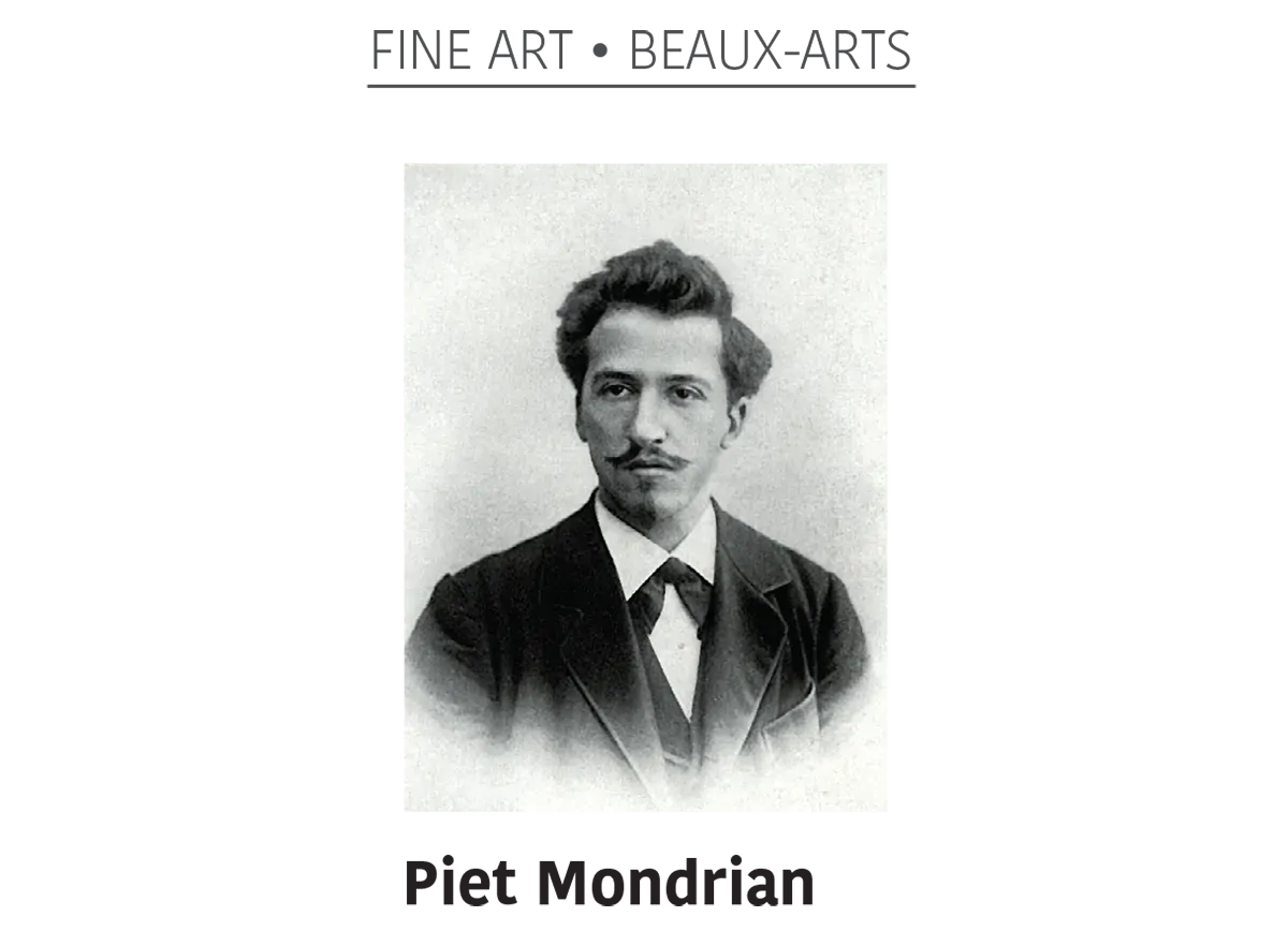 Pieter Cornelis Mondriaan (7 March 1872 - 1 February 1944), known after 1911 as Piet Mondrian, was a Dutch painter and art theoretician who is regarded as one of the greatest artists of the 20th century. He was one of the pioneers of 20th century abstract art. Although his early work was representational, he slowly developed his artistic philosophy, his works slowly devolving first into cubism, then to pure abstraction and non-representation. Upon the outbreak of WWII, he moved to Manhattan, NY, where he spent the rest of his life.