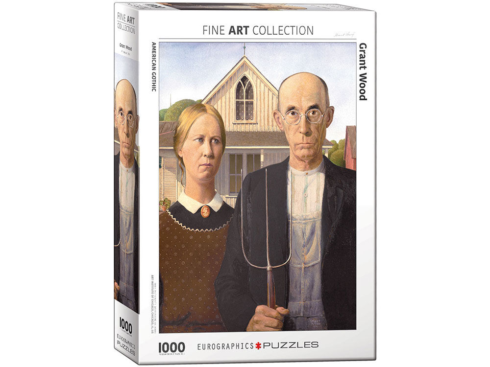 EuroGraphics American Gothic 1000-Piece Puzzle. American Gothic caused a stir in 1930 when it was exhibited for the first time at the Art Institute of Chicago and awarded a prize of $300. Newspapers across the country carried the story and the painting of a farm couple posed before a white house brought the artist instant fame.