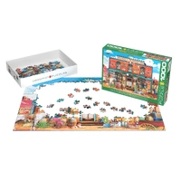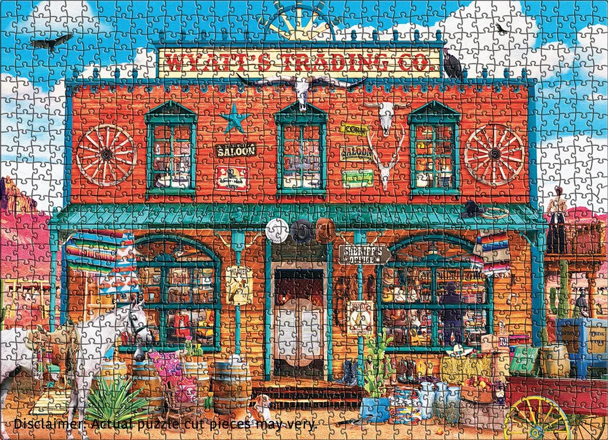 Saddle up for a trip to the Wild West! Wyatt's Trading Co. by artist Leann Kate is a story-packed puzzle set in a colorful frontier general store - complete with saloon doors, a sheriff's office, wagon wheels, cacti, textiles, a loyal horse and pup, and stacks of curious goods to discover in every section. Bright details and warm desert hues make this a joy to build and a standout to display.