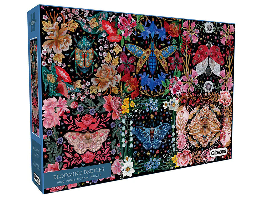 Discover the hidden wonders of nature with Blooming Beetles, a captivating 1000 piece jigsaw puzzle by Maria Matos. Maria Matos is a new artist for Gibsons 2025! Step into a world where the dark and mysterious contrasts with the vivid beauty of beetles, butterflies, and blooming flowers.