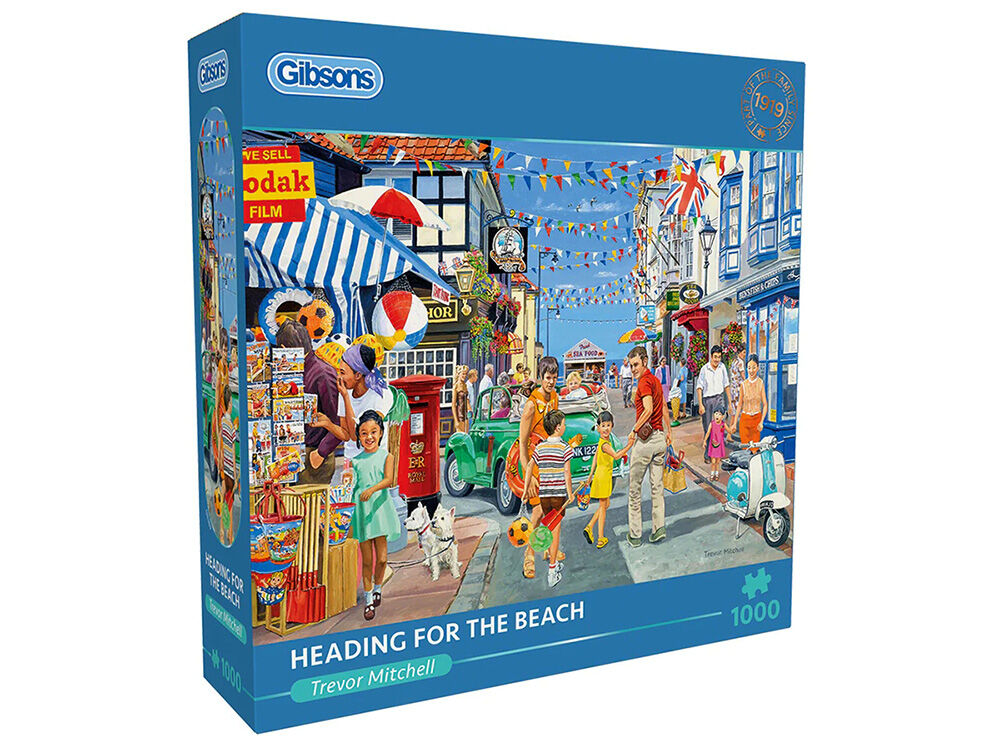 This family is headed for the beach in this 1000 piece jigsaw by Trevor Mitchell. Sunbathing, swimming and sandcastle building are on the agenda and maybe an ice cream later if everybody behaves! As with all Gibsons jigsaws, we use 100% recycled puzzle board, FSC paper and work with the best artists from all around the world. The beautifully illustrated pieces are designed to fit perfectly together; in fact, we use the thickest puzzle board on the market.