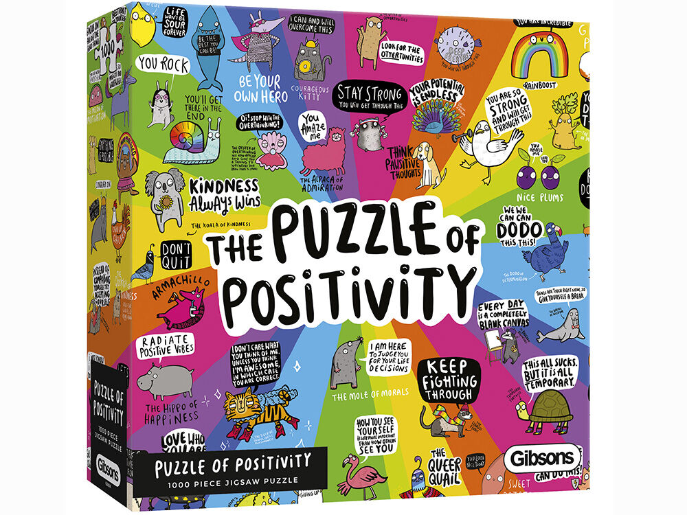 This Puzzle of Positivity is definitely needed during these difficult times. Packed full of pick-me-ups, along with a dash of sarcasm and a healthy portion of puns, this quirky puzzle has been illustrated by Katie Abey and provides bucket loads of happiness and motivation! As with all Gibsons jigsaws, we use 100% recycled puzzle board, FSC paper and work with the best artists from all around the world. The beautifully illustrated pieces are designed to fit perfectly together; in fact, we use the thickest puzzle board on the market.