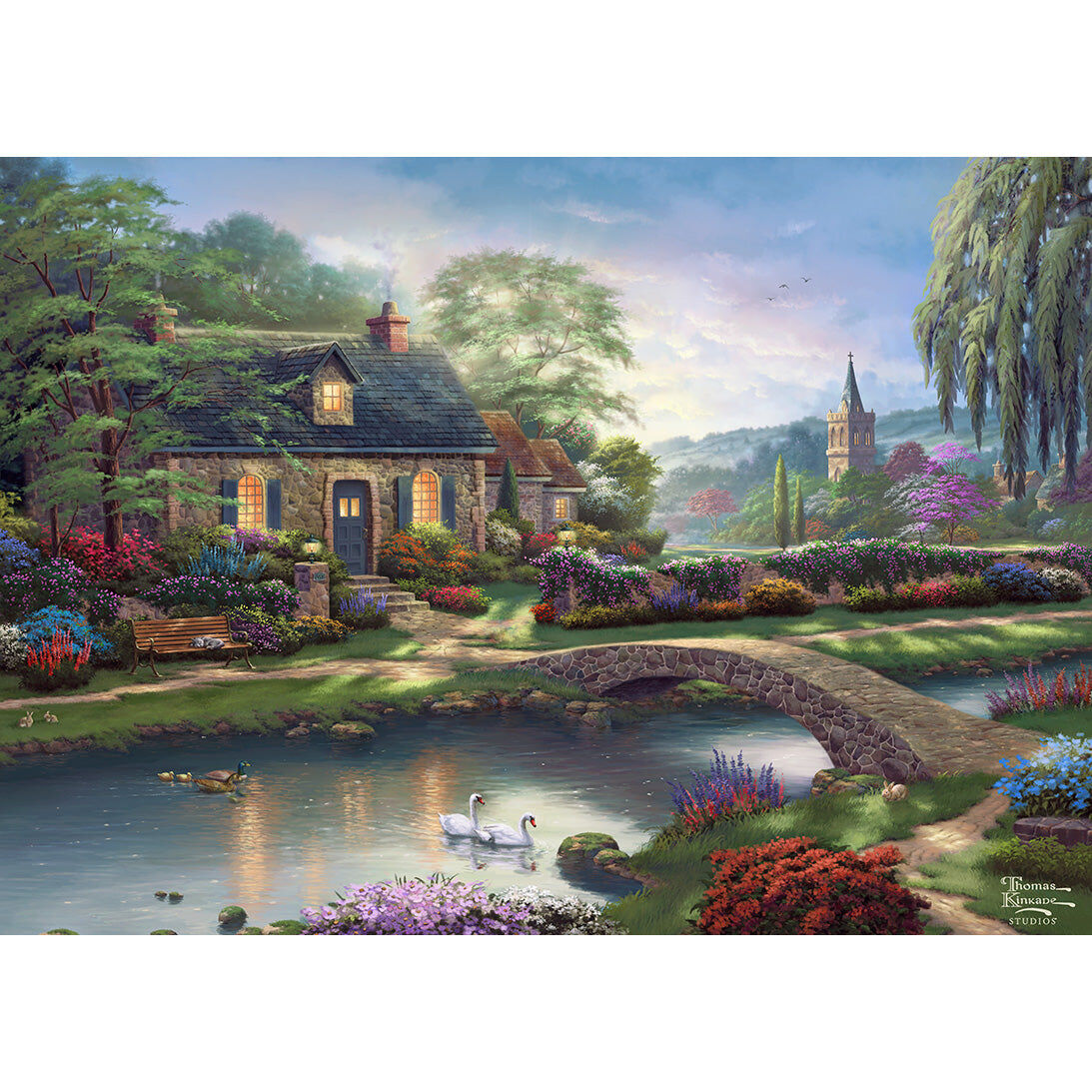 This 1000 piece jigsaw puzzle has been painted by the painter of light, Thomas Kinkade.
