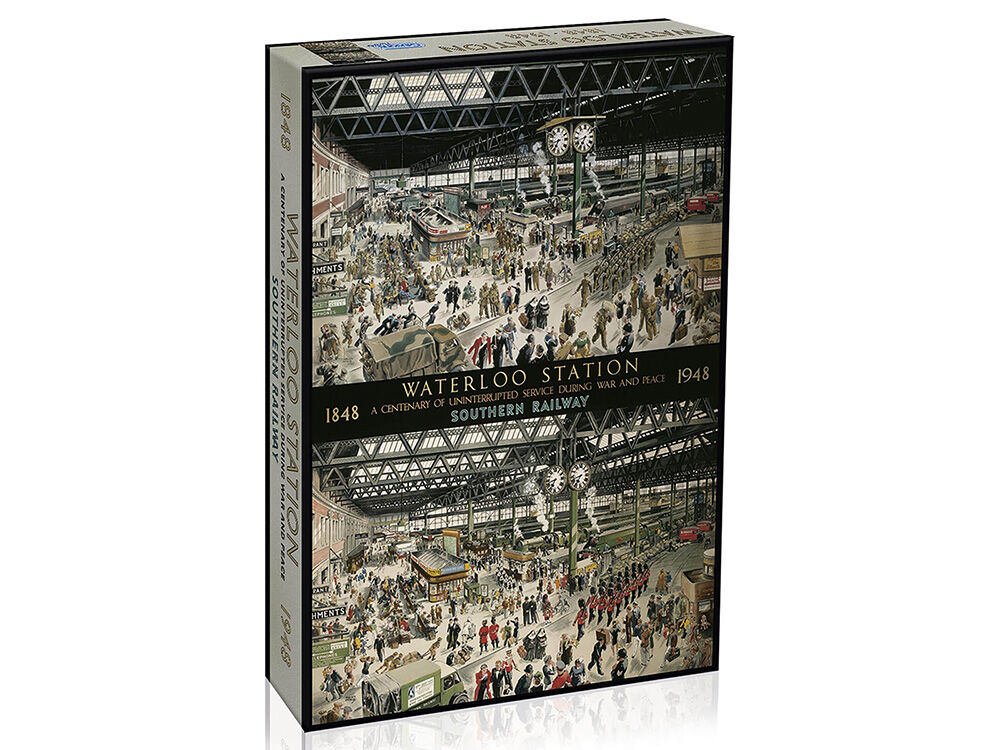 See Waterloo station like never before in this stunning 1000-piece puzzle by Helen Mckie. The jigsaw commemorates the iconic London station at its centenary in 1948. The two images show Waterloo in peacetime versus wartime the contrast amplifying the rich detail woven into the pieces. This 1000 piece jigsaw puzzle was painted by the talented artist Helen Mckie. From Gibsons.