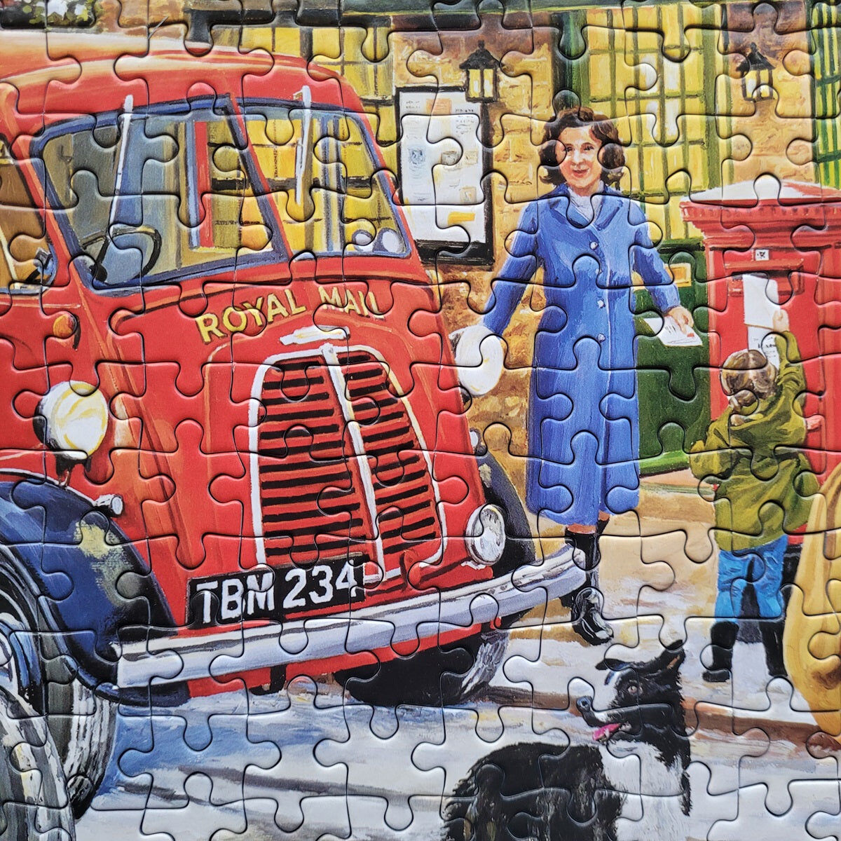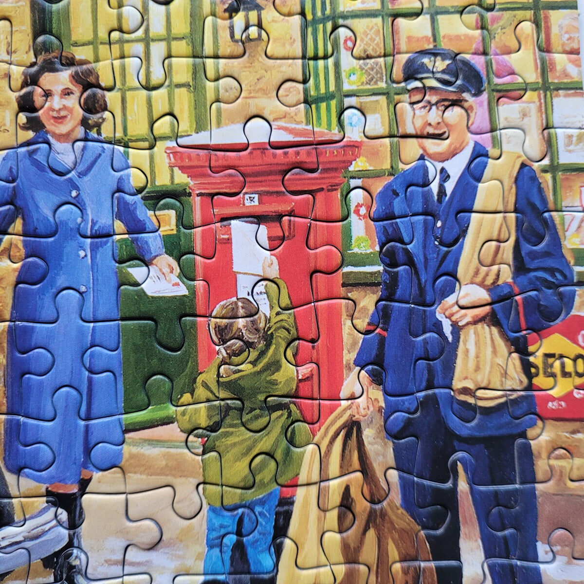 It's a snowy winter’s day at the village Post Office in this nostalgic 500 piece jigsaw puzzle by Trevor Mitchell.