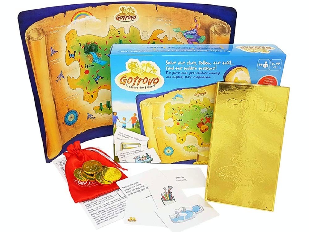 Gotrovo Treasure Hunt is a rare treasure for kids 3+, for one or more players. The game offers active, educational play. Perfect for girls and boys, pirates and princesses, this is a simple way to get children interracting happily together. Trails are quick and easy to lay, and with clues suitable for different ages.