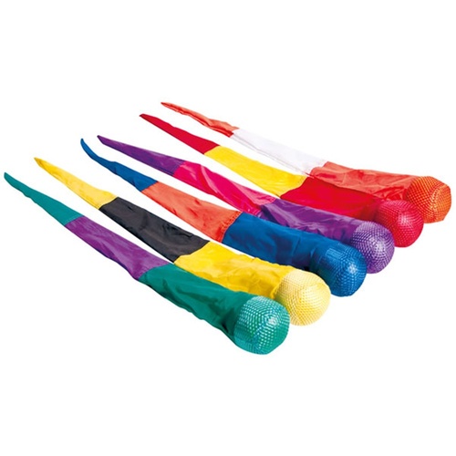 Mega fun set of six multicoloured balls which can be thrown, kicked, twirled or slung. Try and catch them by the ball or by the tail! 10cm diameter balls with 80cm nylon tails. Balls are lightweight vinyl covered foam which are fantastic and safe for young children.