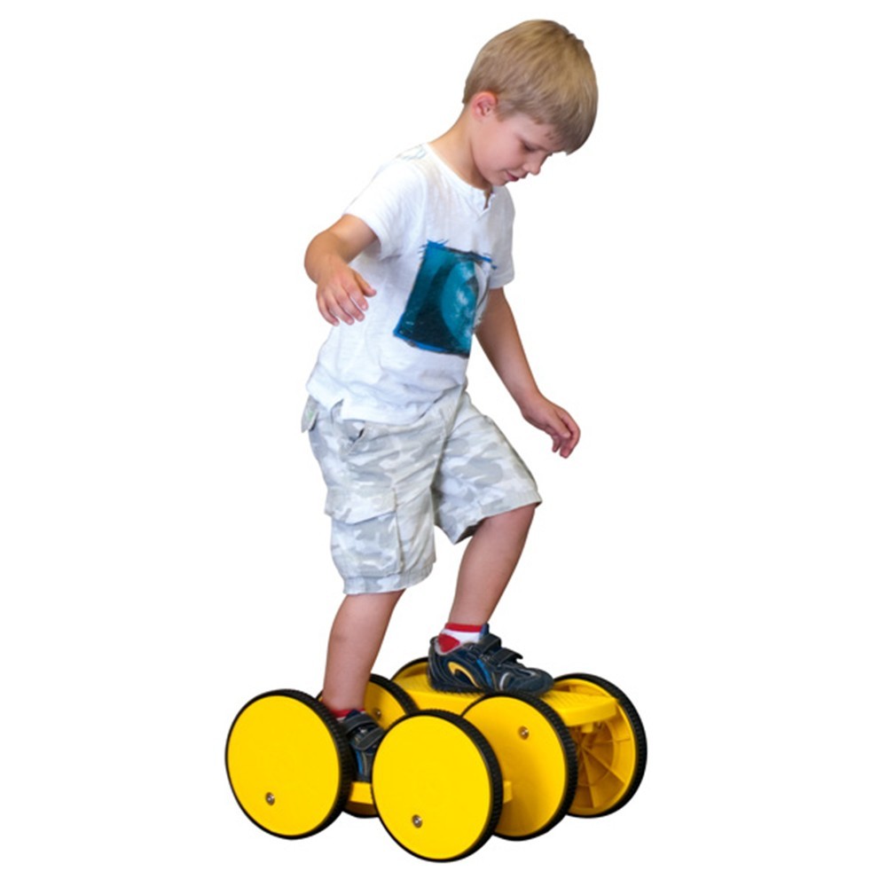 Can be used by young and old. Stand on the platforms and begin walking. The up and down effect improves balance, coordination and reaction. Easy to learn. Supports up to 100kg. Six 21cm wheels
