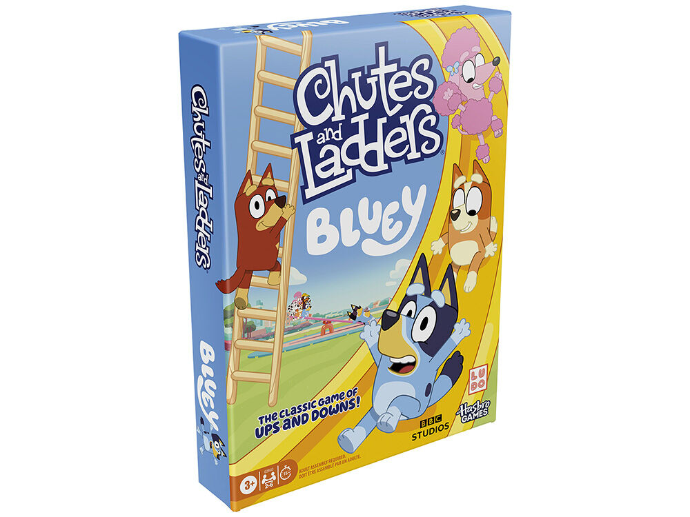 Race to the top of the playground with Bluey, Bingo and all their friends. Ladders let you climb higher, chutes (slides) make you slide back down. Ages 3+.