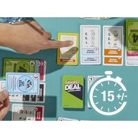 Swap, steal, and scheme with the Monopoly Deal card game! Be the first player to collect 3 complete Property card sets, each in a different color, to win. This deck includes 110 cards: Property cards, Wild Property cards, Action cards, and Money cards. Wild Property cards help players build Property sets. Action cards mix up the game by letting players collect rent, steal and swap properties, and more. And players pay their debts with Money cards. Easy to play and set up, this card game for ages 8 and up can be played in as little as 15 minutes!