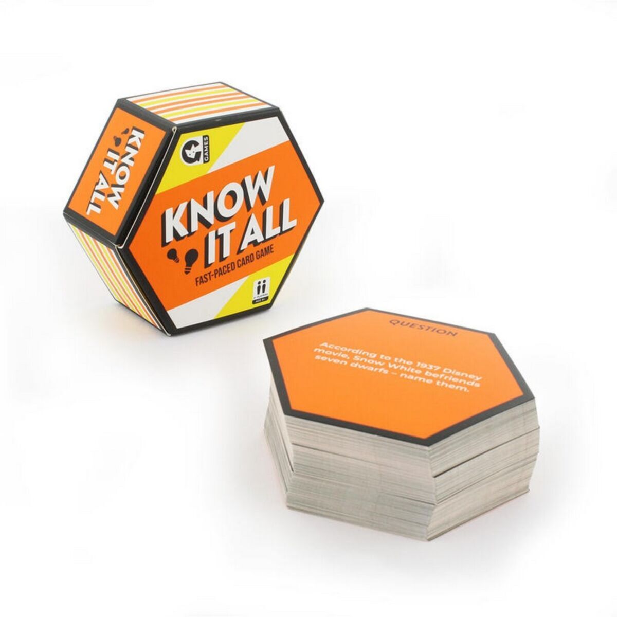 - FAST-PACED, FUN TRIVIA GAME FOR FAMILIES & FRIENDS: KNOW IT ALL is the exciting trivia game where players race to list as many correct answers as possible in a set time. Whether it's naming capital cities, famous inventions, or historical events, this game challenges your reflexes and knowledge in a fun and competitive way. Get ready to test your brainpower in this fast-paced family card game!