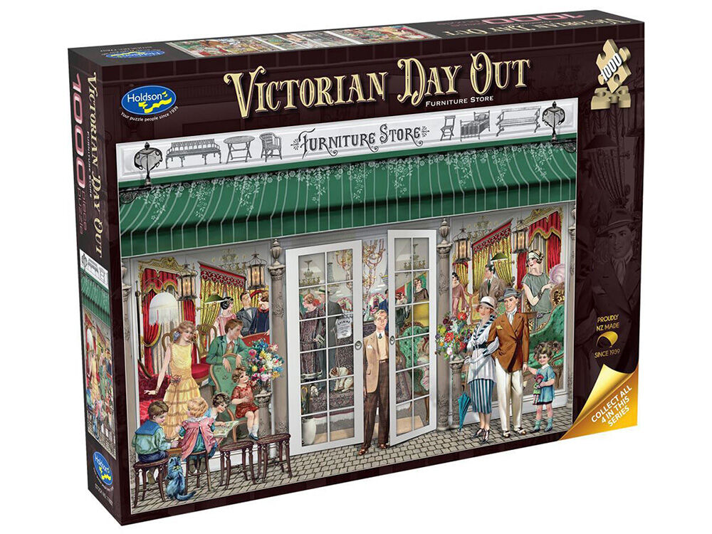Enjoy a charming Victorian Day Out with this delightful 1000pc puzzle assortment, featuring nostalgic scenes. Each beautifully illustrated puzzle captures the elegance and bustling charm of a bygone era. Manufactured in New Zealand by Holdson using vegetable-based inks and recyclable materials. Suitable for ages 8+ years.