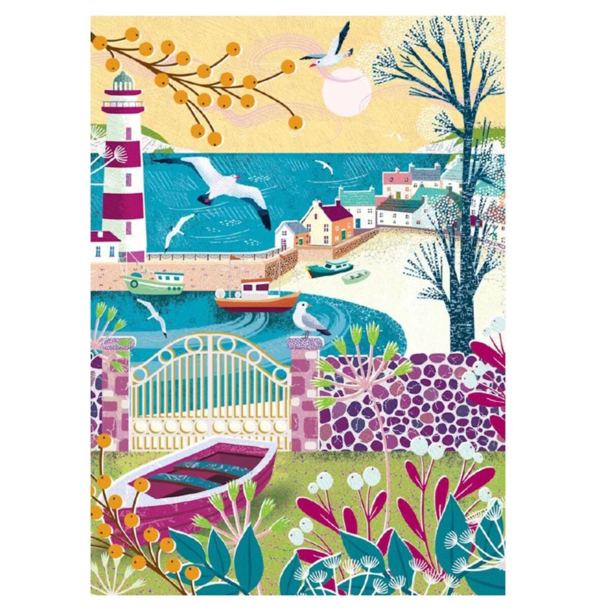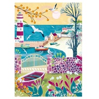 This charming puzzle captures a colourful seaside village where boats drift lazily into the harbour, seagulls wheel across a golden sky, and every detail hums with the warmth of a perfect summer's day.
