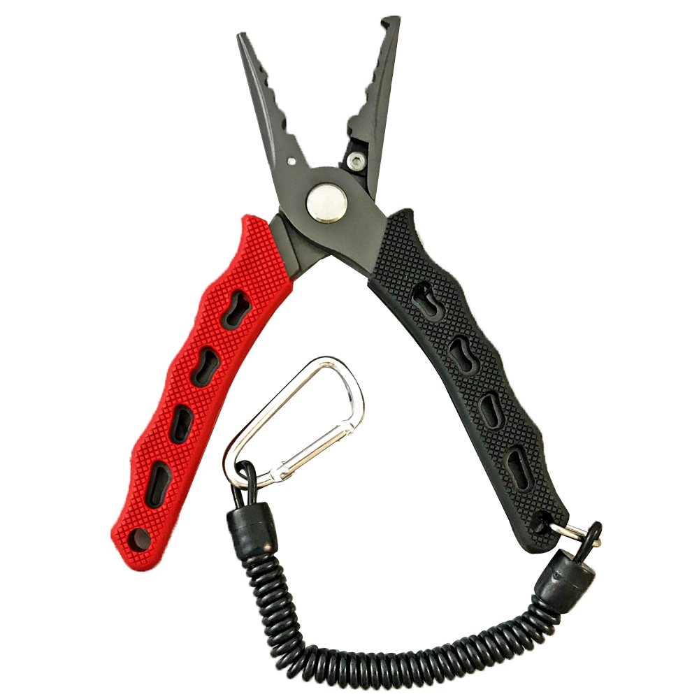 Inner Core Fishing Pliers comes with red and black rubberised handles for improved grip when wet and coil lanyard to prevent loss.