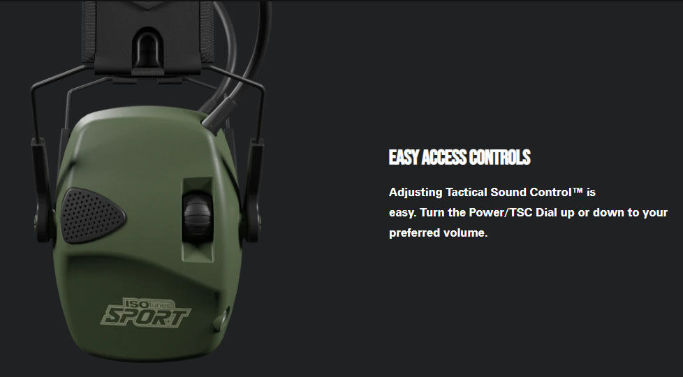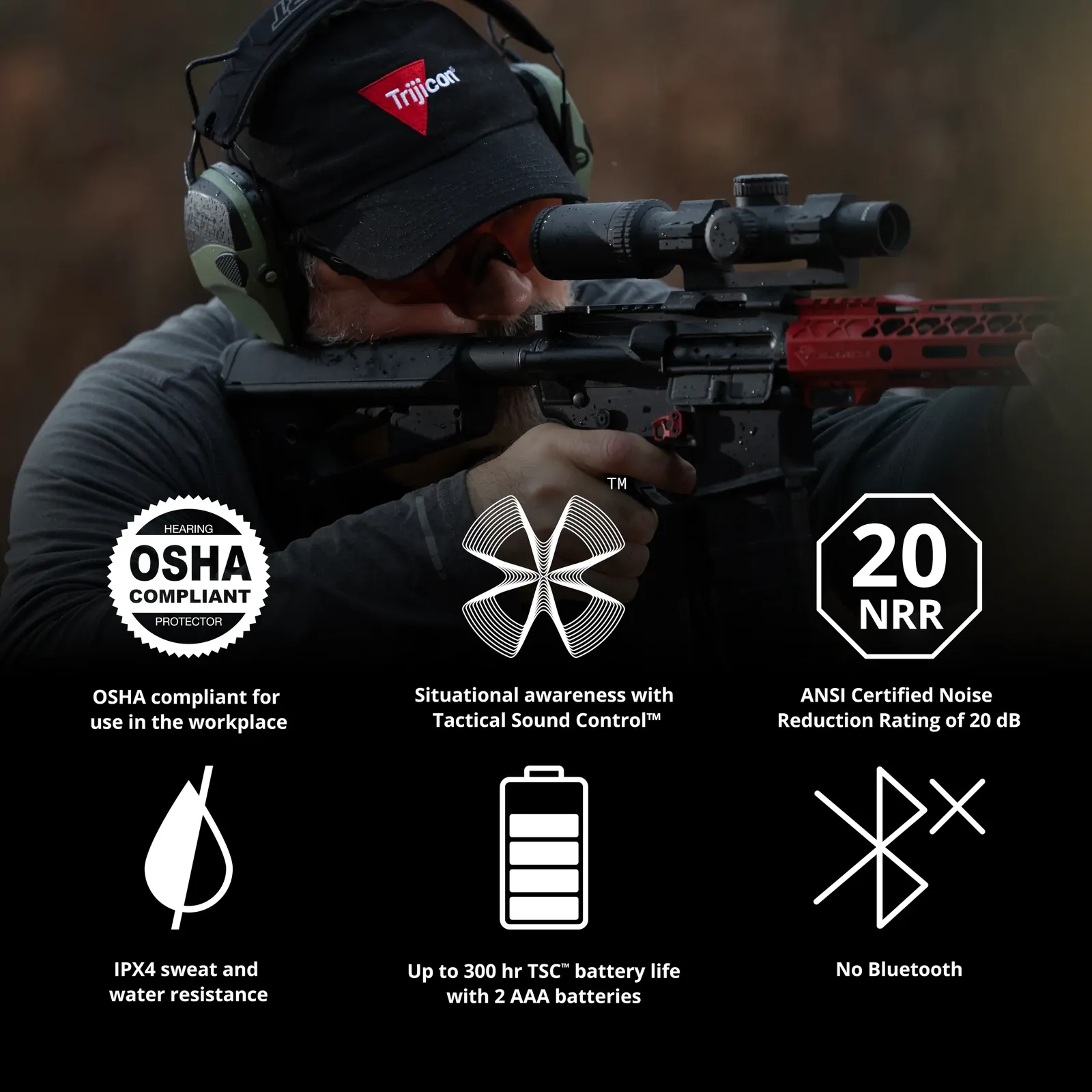 - Tactical Sound Control Technology offers level dependent protection to enhance user's safety and situational awareness.