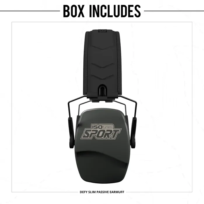 Isotunes DEFY Slim Passive earmuff is a noise-isolating, passive hearing protector in an ultra-slim design. Featuring foam ear cushions, and an adjustable headband, DEFY Slim Passive is for shooters who need a no-frills, practical hearing protection solution.