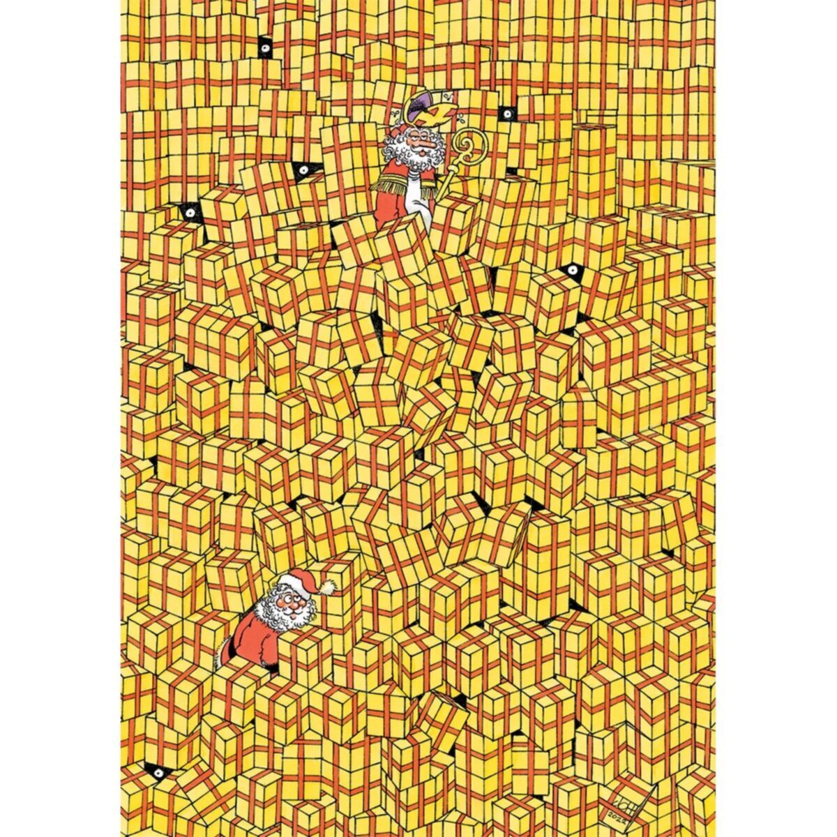 Santa Claus and Sinterklaas love nothing more than thwarting each other, and what better way to do that than by giving away each other's presents, of course! This time, the rivals are so overwhelmed with presents that they can no longer sabotage each other. How did they end up in this situation?