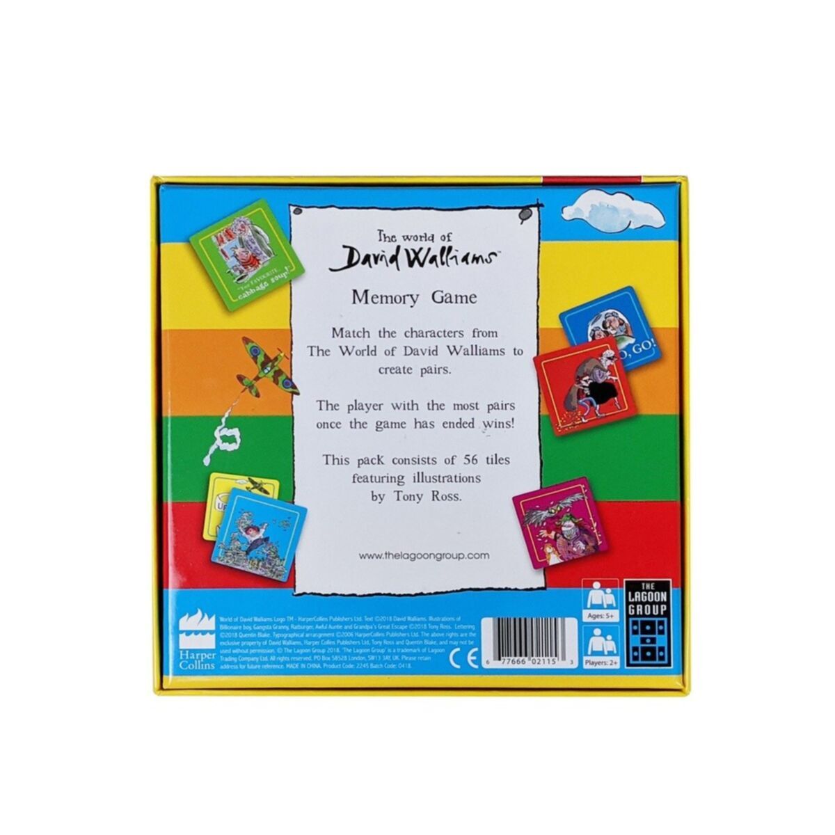 A wonderful Memory Game inspired by the heart-warming and funny stories from The World of David Walliams. This fun, family classic game of pairs features tiles of some of David Walliams' best-loved characters from his most popular books including Gangsta Granny, Awful Auntie, Billionaire Boy, Ratburger and Grandpa's Great Escape. This great family game, featuring Tony Ross' iconic illustrations and suitable for all ages, encourages concentration, turn taking and helps to develop memory skills. This fun-packed Memory Game makes the perfect gift for any fan of David Walliams storybooks. Suitable for age 5 years and over.