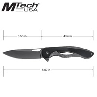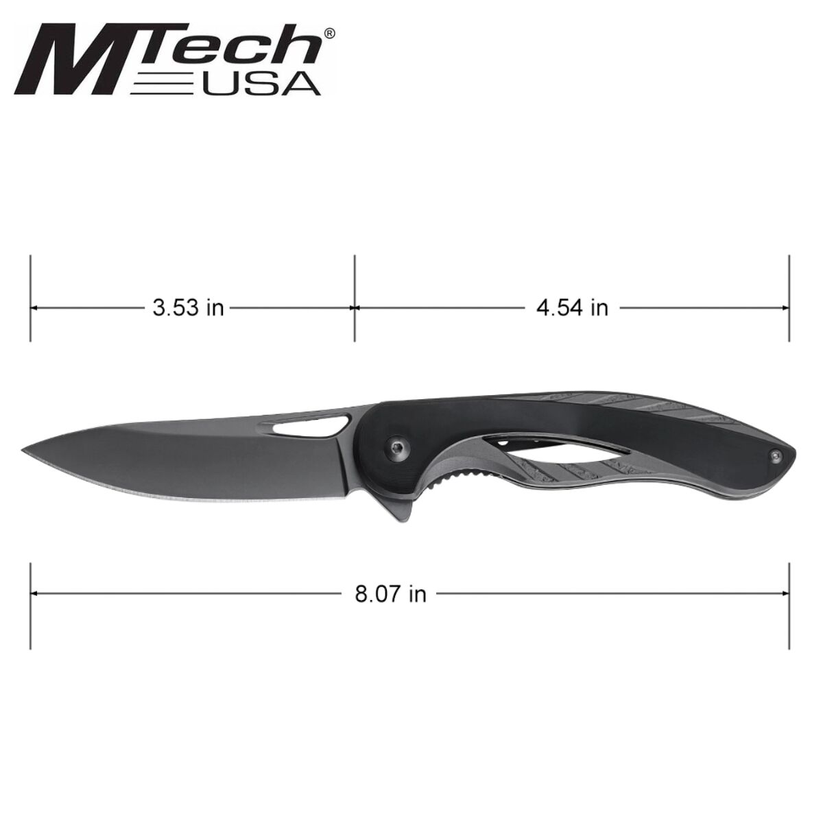 Designed for smooth deployment and reliable performance, the MTech USA Manual Folding Knife is an essential everyday carry tool. Featuring a 3.53" 3Cr13 stainless steel drop point blade with a satin finish, this knife offers durability and precision cutting. The oxidized aluminum handle with a brushed finish provides a sleek yet secure grip, while the ball bearing pivot ensures effortless blade action.