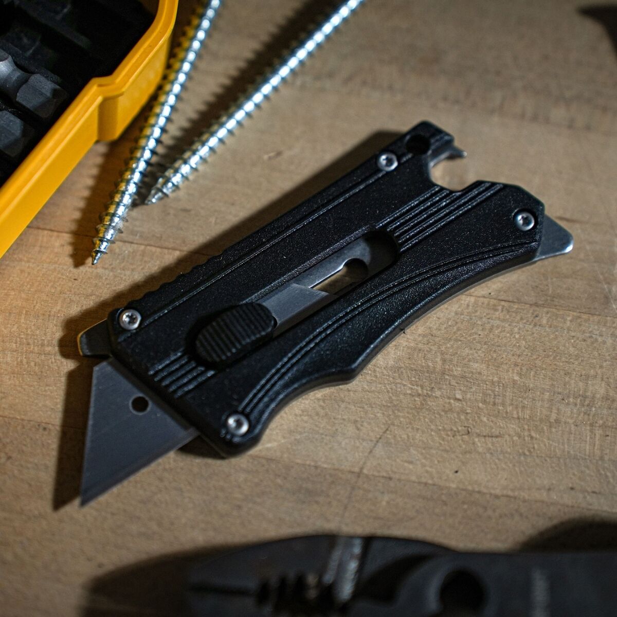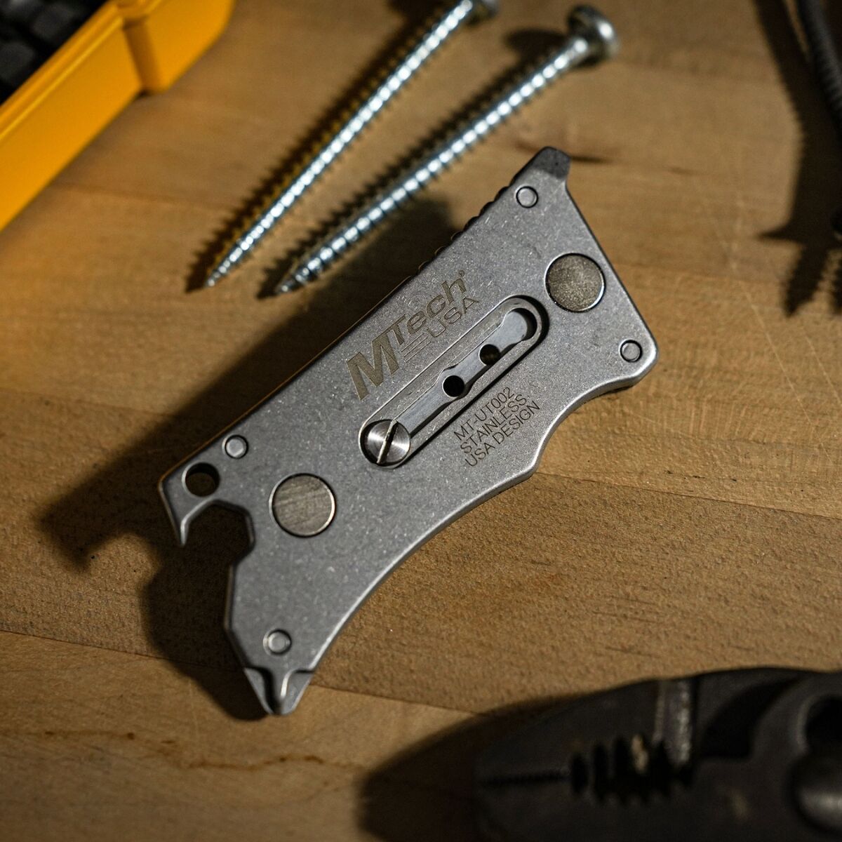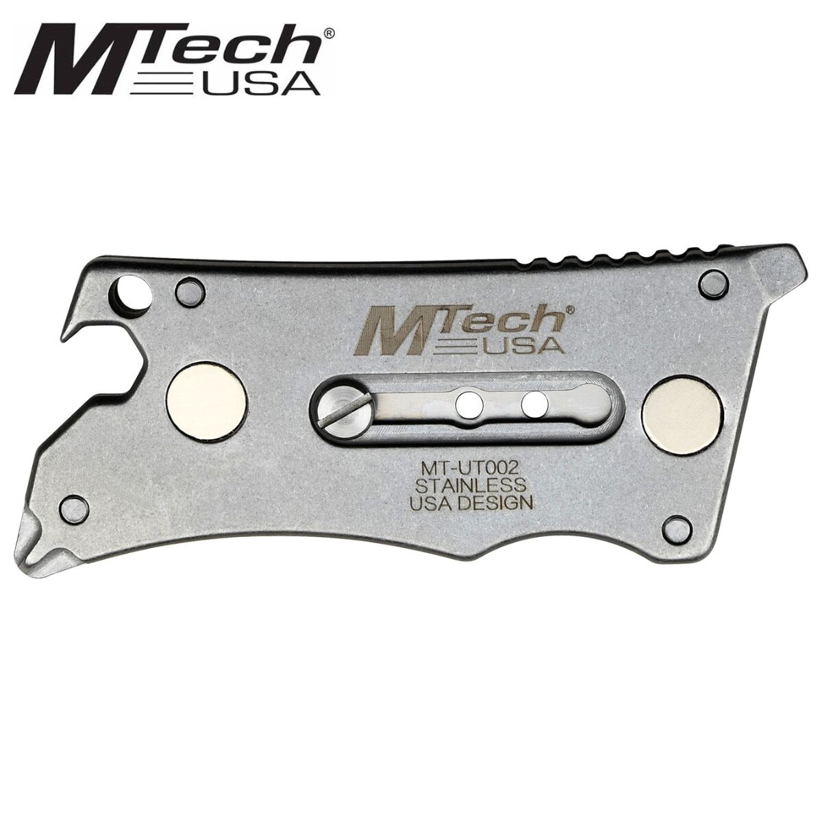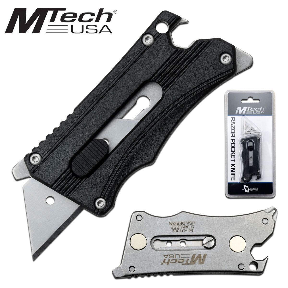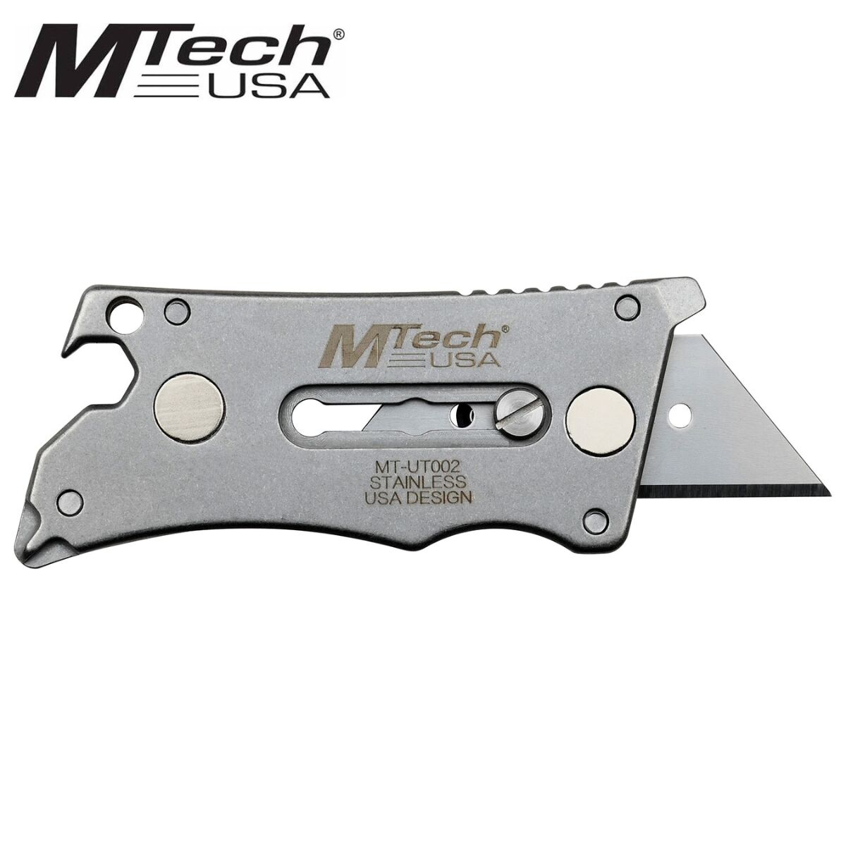 The MTech USA Utility Blade Multi-Tool is a compact and versatile EDC essential, built for everyday tasks at work, home, or outdoors. Featuring a durable SK5 stainless steel replaceable blade, this tool ensures razor-sharp performance for precision cutting. The black injection-molded ABS and stainless steel handle provide a comfortable grip, while the integrated bottle opener, screwdriver, and magnetic back offer added functionality. Whether you're tackling DIY projects, outdoor adventures, or workplace tasks, this multi-tool is designed for convenience and reliability.