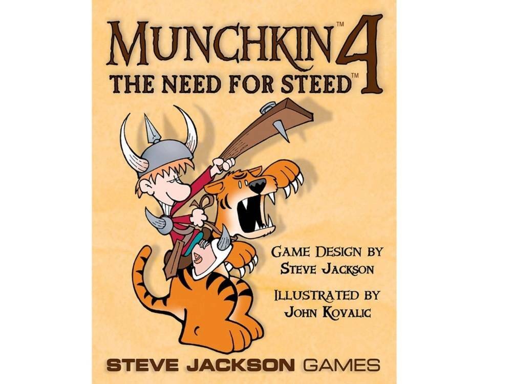 A third expansion for the original Munchkin 112 more John Kovalic-illustrated cards for killing monsters, stealing treasure, and backstabbing your fellow players. This set introduces Steeds, the trusty mounts of legend. Oh, wait this is Munchkin! So these Steeds include not just the Dragon and the Tiger, but the Giant Mutant Gerbil (drawn by guest artist Shaenon K. Garrity of Narbonic), the Chicken, and Big Joe, who might be a Steed or might be a Hireling. It's hard to tell.
