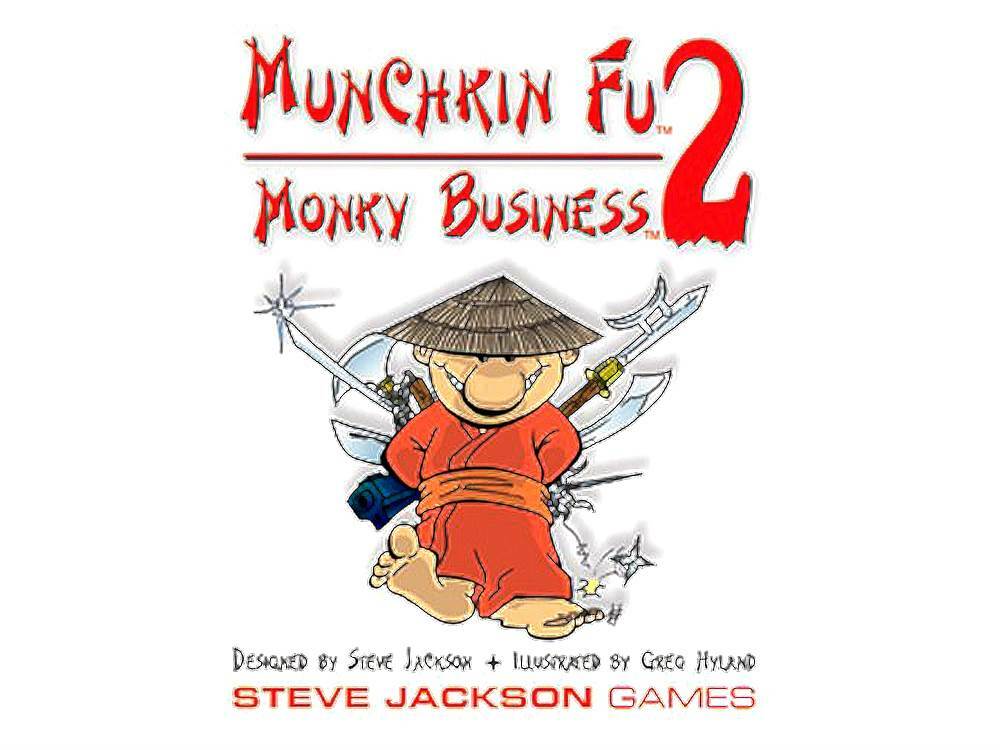 The team of Origins-Award-winning designer Steve Jackson and mad cartoonist Greg Hyland (Lethargic Lad, Munchkin Fu) are back again for Monky Business. It's got 110 evil and overpowered cards, plus two blanks to create your own. And of course, like all other Munchkin products, this supplement is completely compatible with the original Munchkin and all its supplements and spinoffs, including Star Munchkin, Munchkin Bites!, and Munchkin Blender.